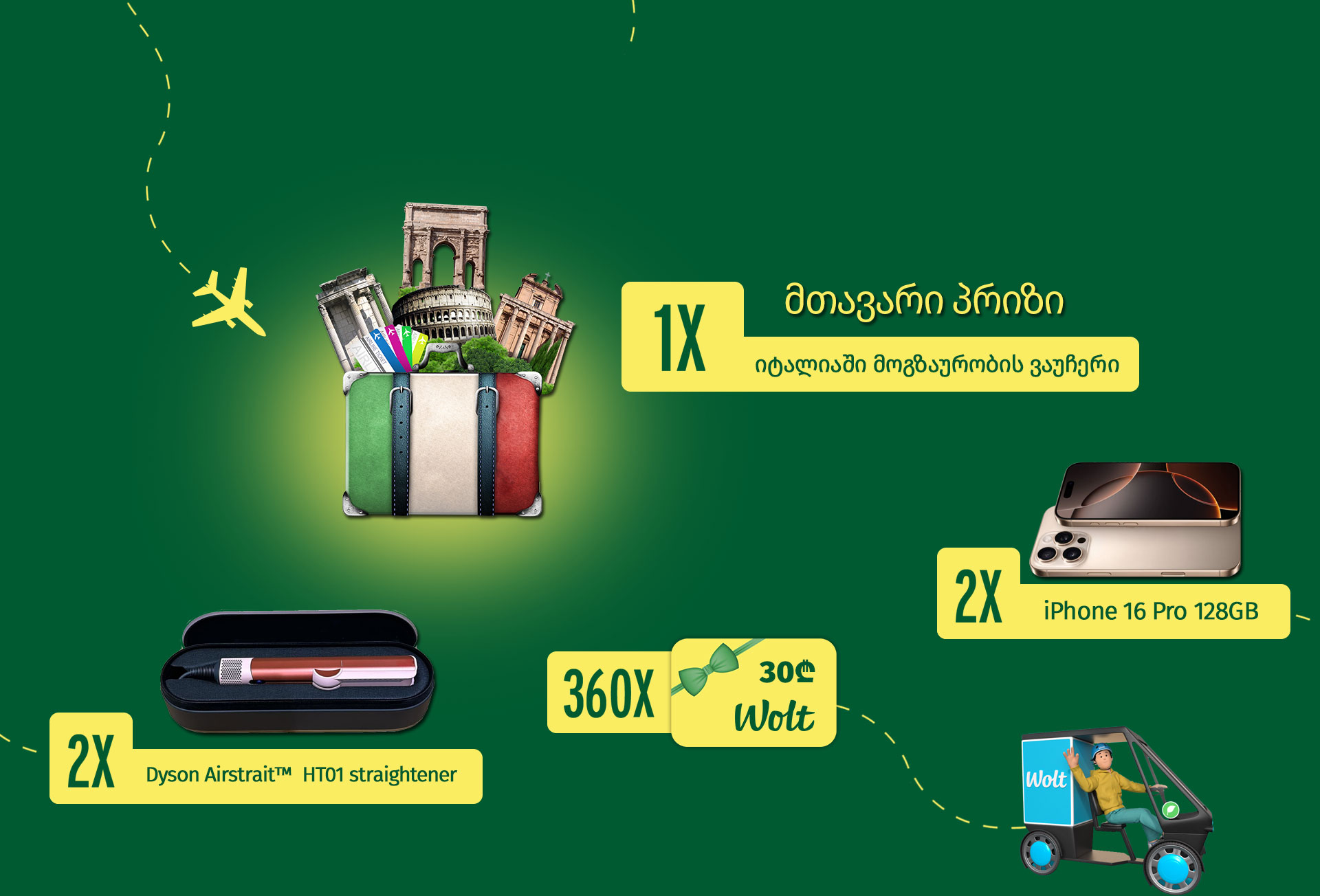 ყოველკვირეული პრიზის Wolt-ის ელექტრონული პრომო-კოდი იქნება ასახული გამარჯვებულის პირად სივრცეში, ციფრულ ფორმატში და ხელმისაწვდომი დაკოპირებისთვის.
